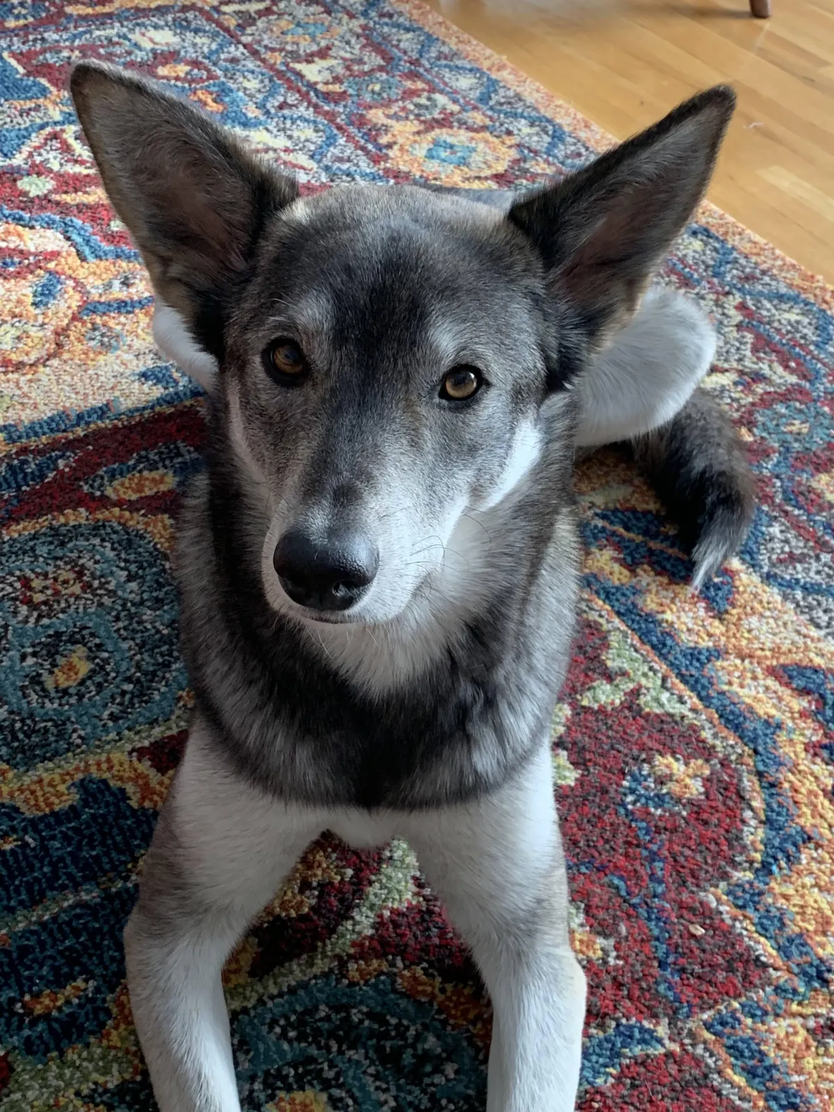 Takes walks 2x per day every day. Sticks, friends, licks, walks, snacks. And the occasional disappear into the forest. Terrible to work with (due to excessive cuddling).